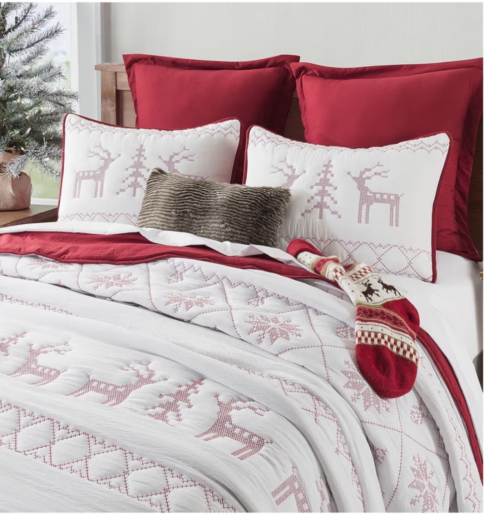 Flannel sheets or festive bedding make winter nights extra cozy.